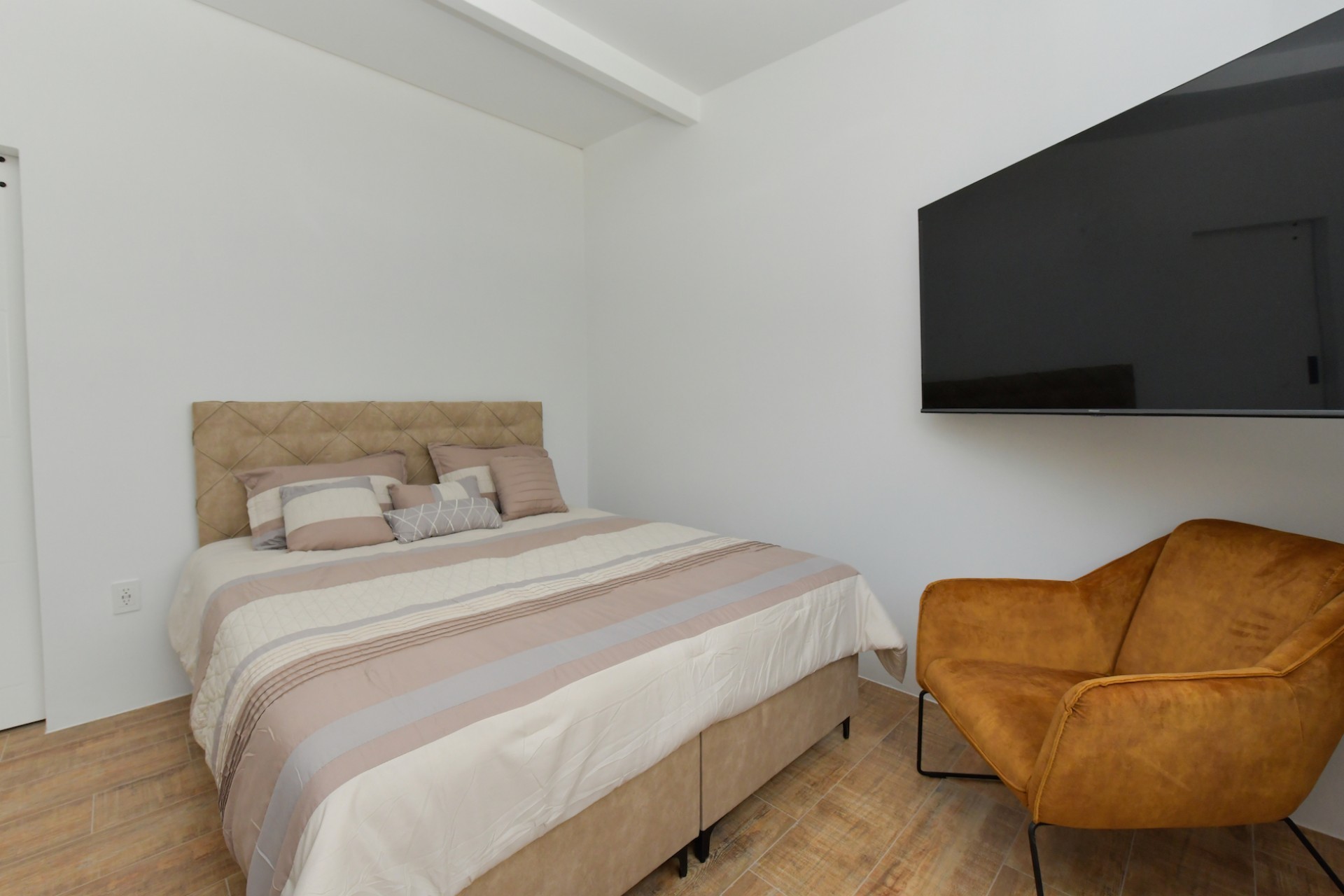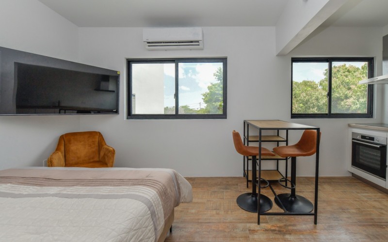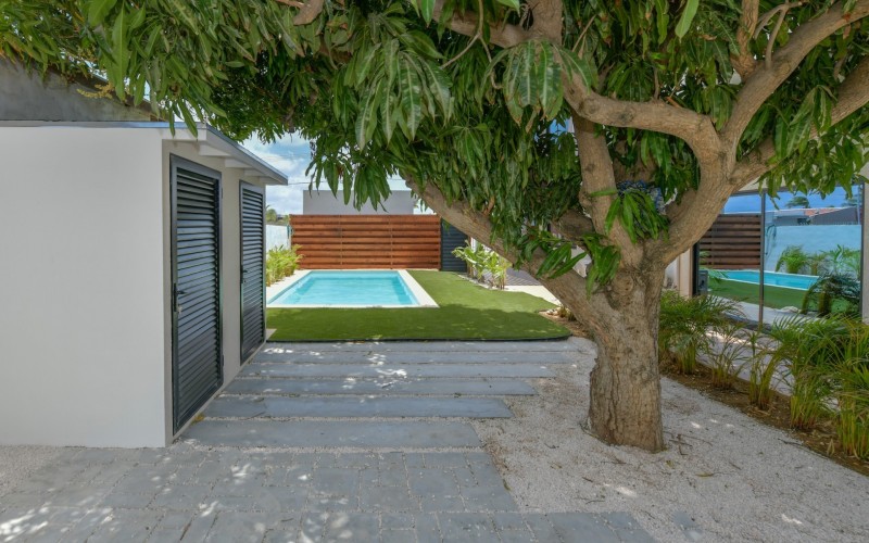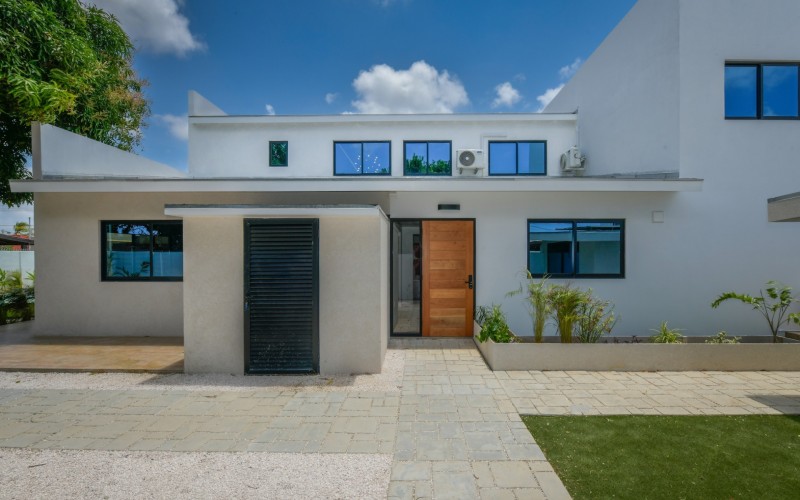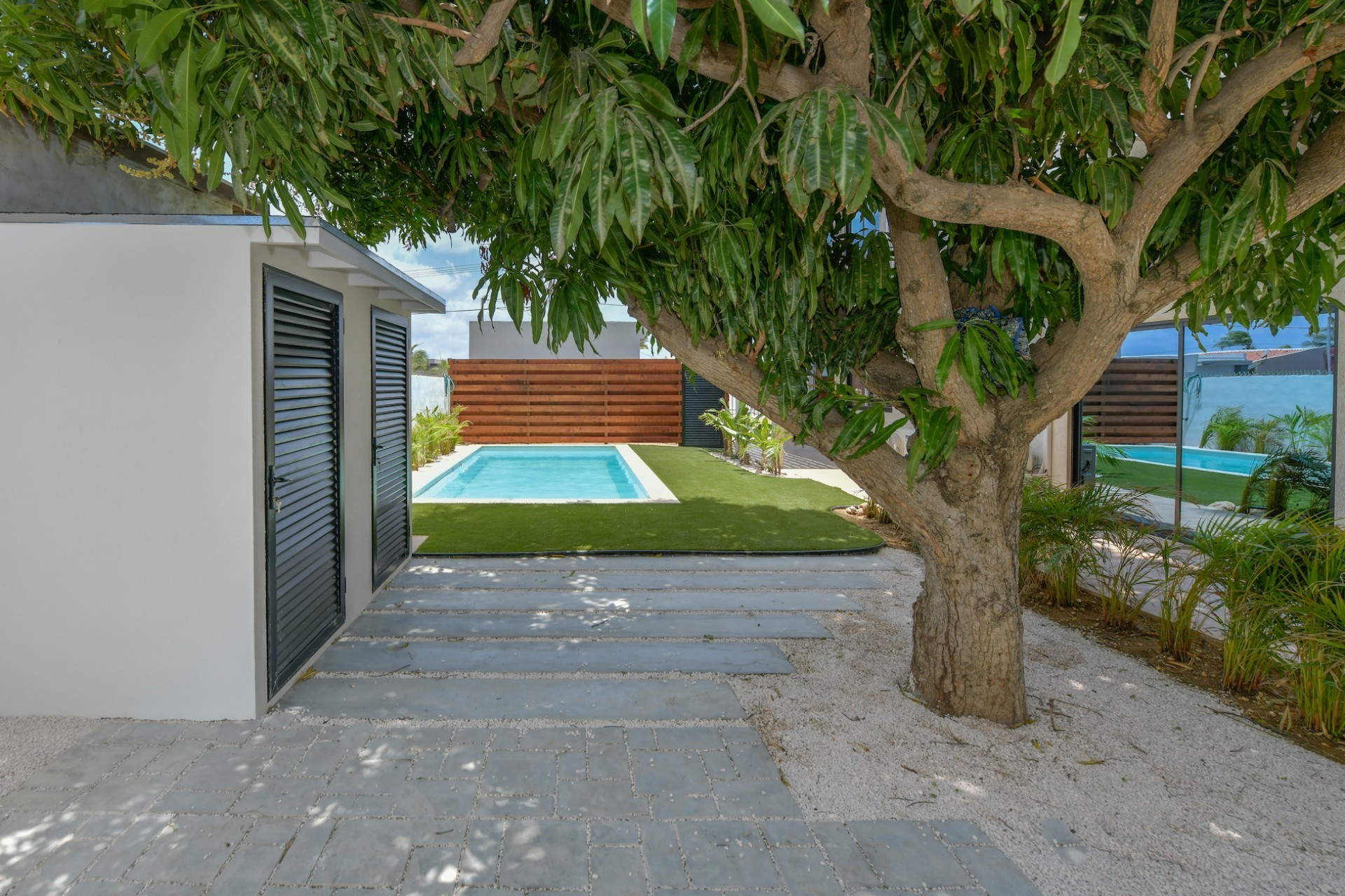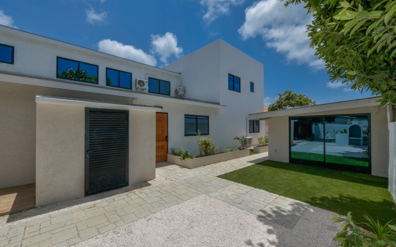 Spacious Studio Apartment, unit 8 Located on a 727m² property, this beautiful and well constructed complex features a main building with 10 high-end studio apartments and 1 two bedroom apartment. Apartment 8, situated on the first floor, is a 25m² studio without private outside area. Inside, you will find a premium quality European kitchen complete with all appliances, all bedroom and living room furniture and light fixtures and a private Grof by Kohler luxury bathroom. The apartment, positioned at the back of the building, providing a comfortable and relaxing outdoor space. The building is constructed with solid concrete blocks and columns, ensuring durability. The walls are finished with A1 plaster and paint. The apartment has a modern European and refined look, featuring wooden sliding doors and black aluminum-framed double glass isolated windows. The flooring is covered with high-quality Brazilian ceramic tiles, adding to the overall elegance. A split-unit air conditioner efficiently cools the entire apartment. The communal garden offers various well-designed amenities, including all outdoor furniture, swimming pool and pool deck and a barbecue area with pergola. Additionally, the outdoor space features a communal washer and dryer, extra seating areas, walkways, garden lighting, and lush greenery with plants and trees, creating a relaxing atmosphere. The apartment is located on a spacious paved road in center Oranjestad: Rudolf Arendsstraat 42. Just a few minutes' drive from the cruiseterminal, beaches and and restaurants. It's all conveniently nearby, making this an ideal place to live or enjoy a holiday in your second home. Key Features: 1 studio apartment Property land Close proximity to Oranjestad Spacious build-up area: 25m² Community amenities include pool, BBQ area and sitting areas Low monthly HOA fee Turn key, including all premium European kitchen, furniture and appliances Don’t miss out on this unique opportunity! Contact us today to learn more or schedule a visit! Bibi Louwers +2975697343