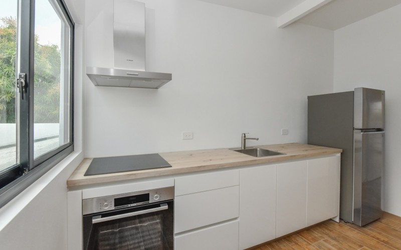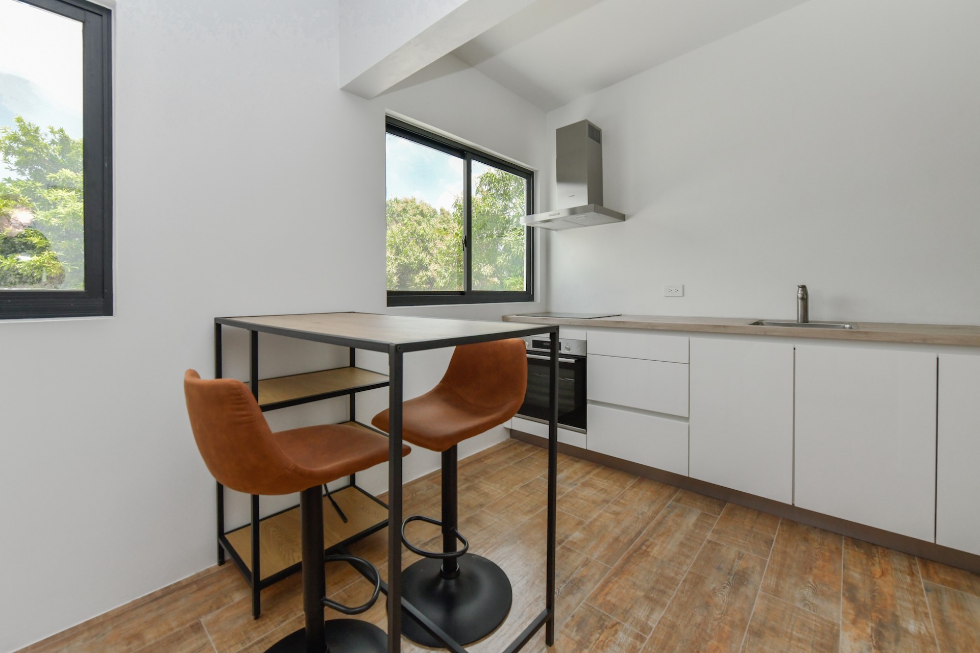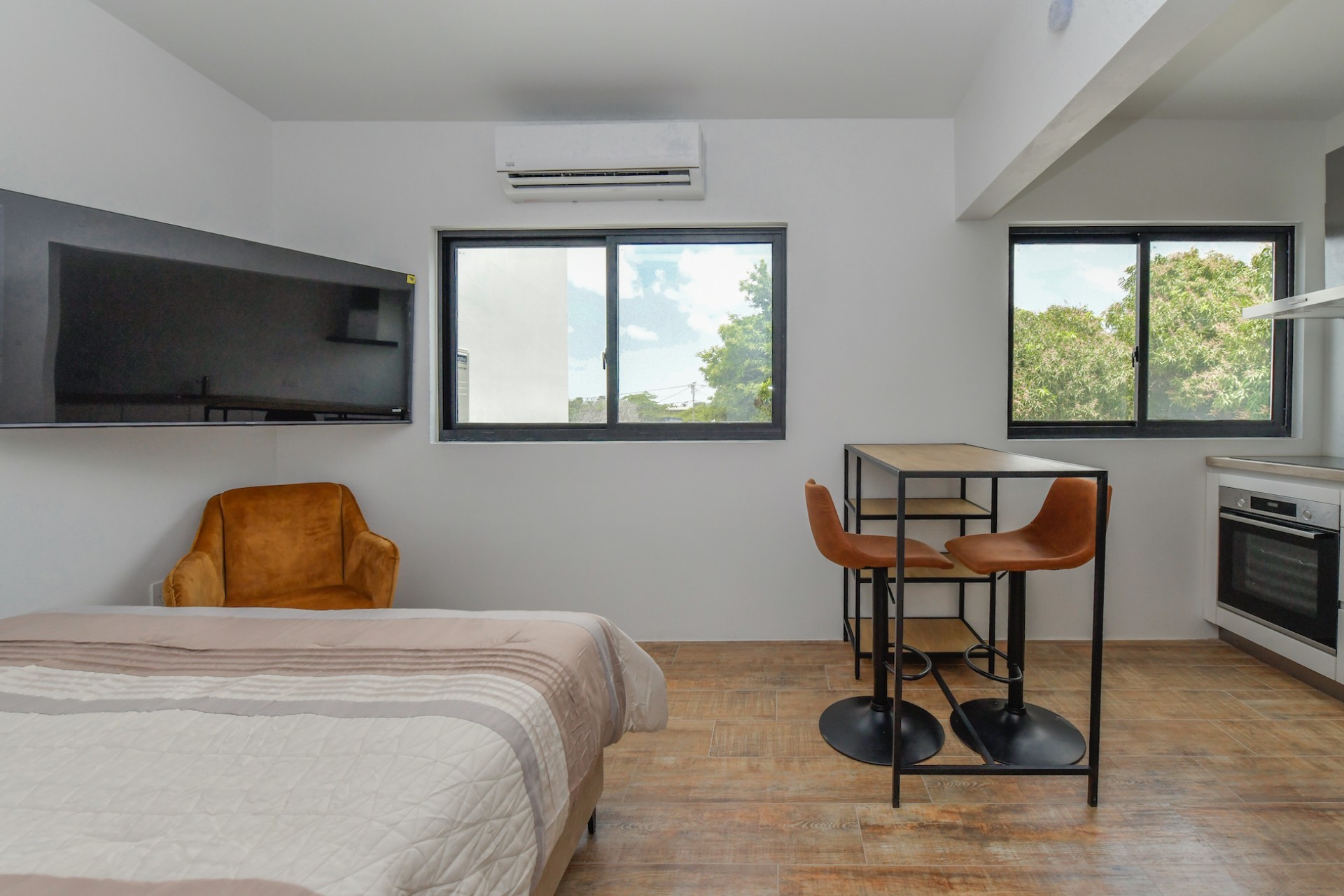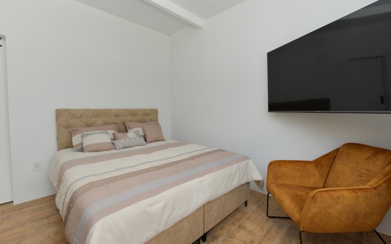 Spacious Studio Apartment, unit 8 Located on a 727m² property, this beautiful and well constructed complex features a main building with 10 high-end studio apartments and 1 two bedroom apartment. Apartment 8, situated on the first floor, is a 25m² studio without private outside area. Inside, you will find a premium quality European kitchen complete with all appliances, all bedroom and living room furniture and light fixtures and a private Grof by Kohler luxury bathroom. The apartment, positioned at the back of the building, providing a comfortable and relaxing outdoor space. The building is constructed with solid concrete blocks and columns, ensuring durability. The walls are finished with A1 plaster and paint. The apartment has a modern European and refined look, featuring wooden sliding doors and black aluminum-framed double glass isolated windows. The flooring is covered with high-quality Brazilian ceramic tiles, adding to the overall elegance. A split-unit air conditioner efficiently cools the entire apartment. The communal garden offers various well-designed amenities, including all outdoor furniture, swimming pool and pool deck and a barbecue area with pergola. Additionally, the outdoor space features a communal washer and dryer, extra seating areas, walkways, garden lighting, and lush greenery with plants and trees, creating a relaxing atmosphere. The apartment is located on a spacious paved road in center Oranjestad: Rudolf Arendsstraat 42. Just a few minutes' drive from the cruiseterminal, beaches and and restaurants. It's all conveniently nearby, making this an ideal place to live or enjoy a holiday in your second home. Key Features: 1 studio apartment Property land Close proximity to Oranjestad Spacious build-up area: 25m² Community amenities include pool, BBQ area and sitting areas Low monthly HOA fee Turn key, including all premium European kitchen, furniture and appliances Don’t miss out on this unique opportunity! Contact us today to learn more or schedule a visit! Bibi Louwers +2975697343