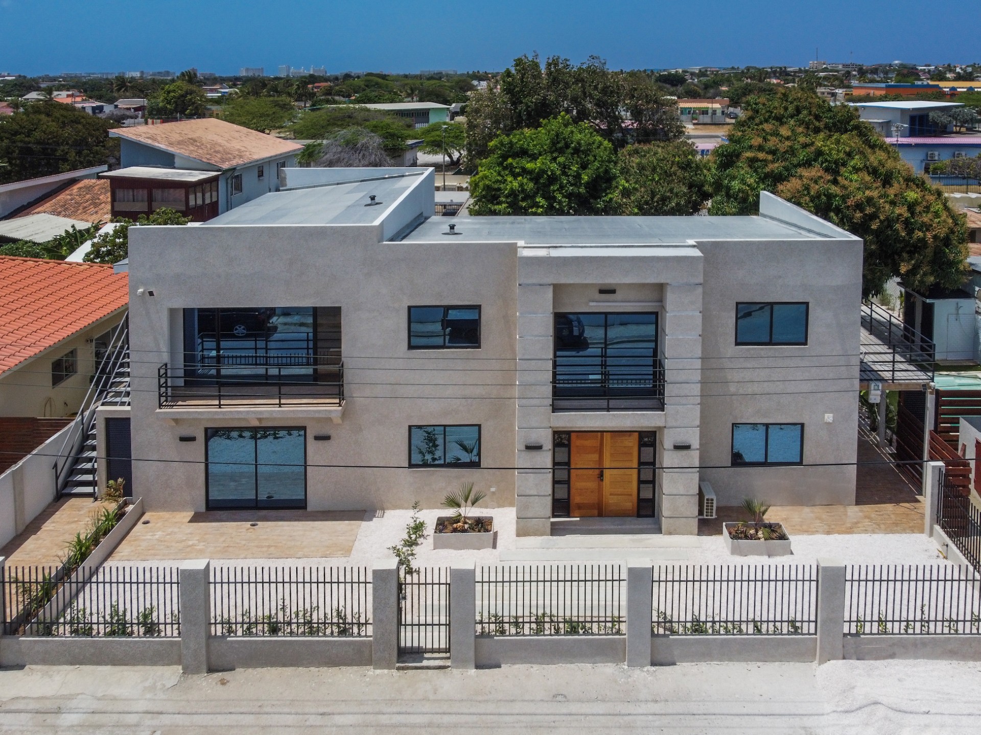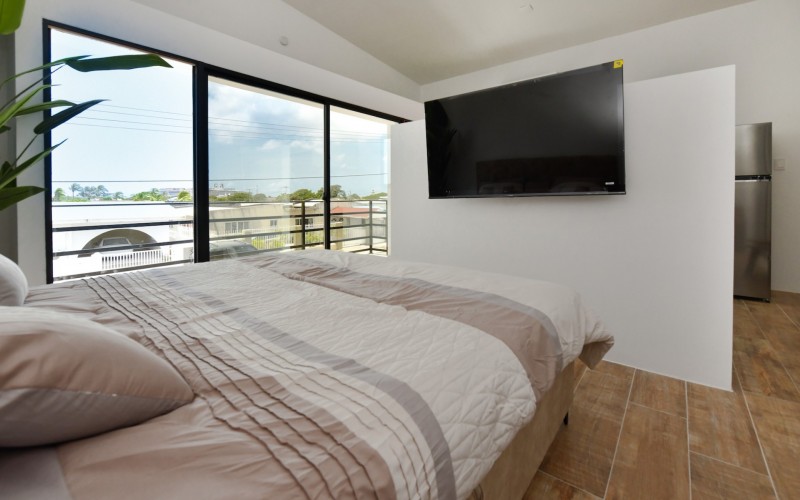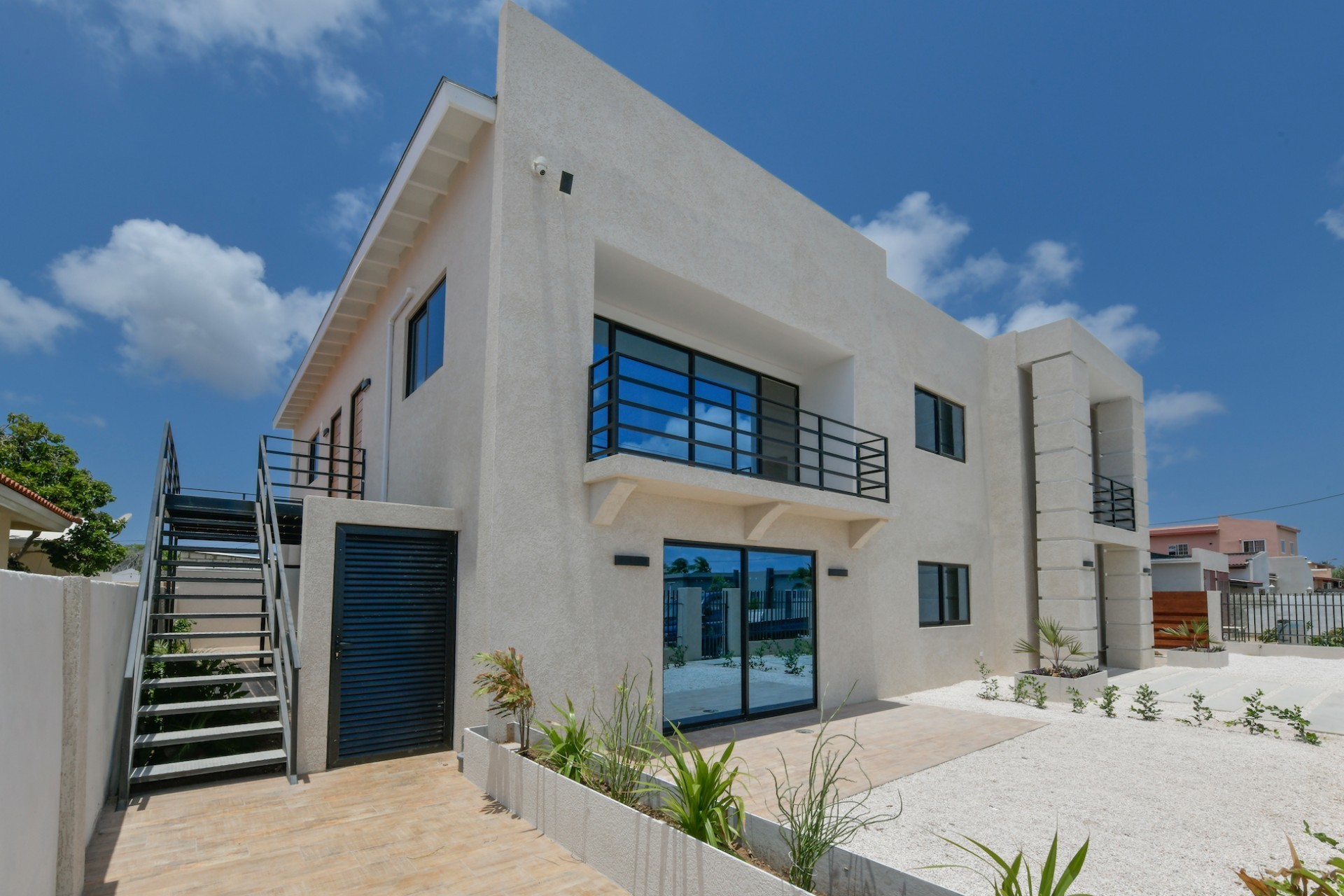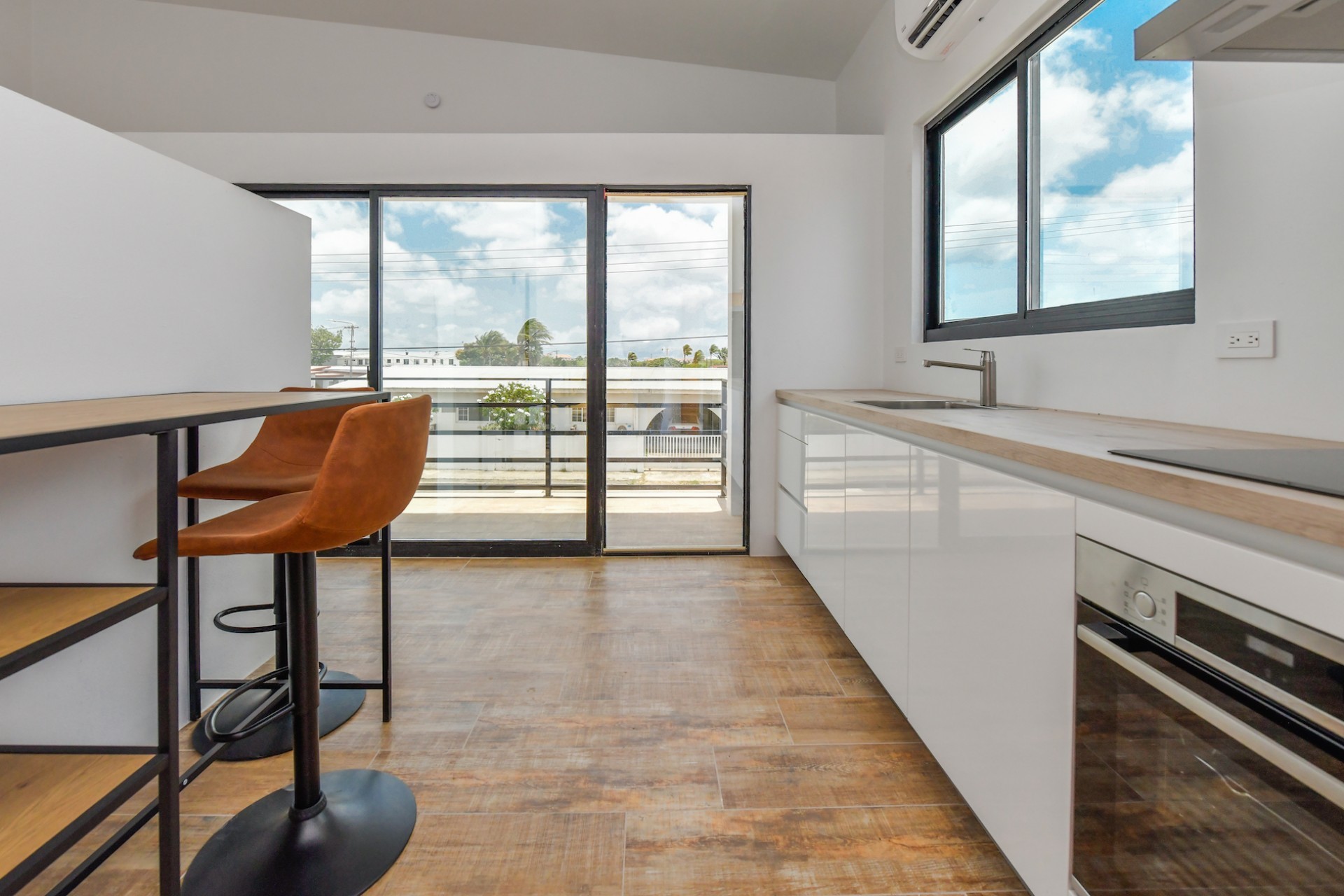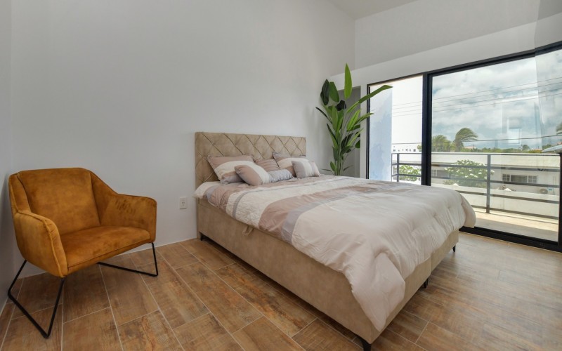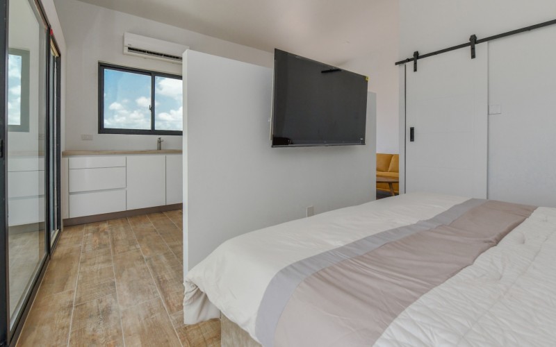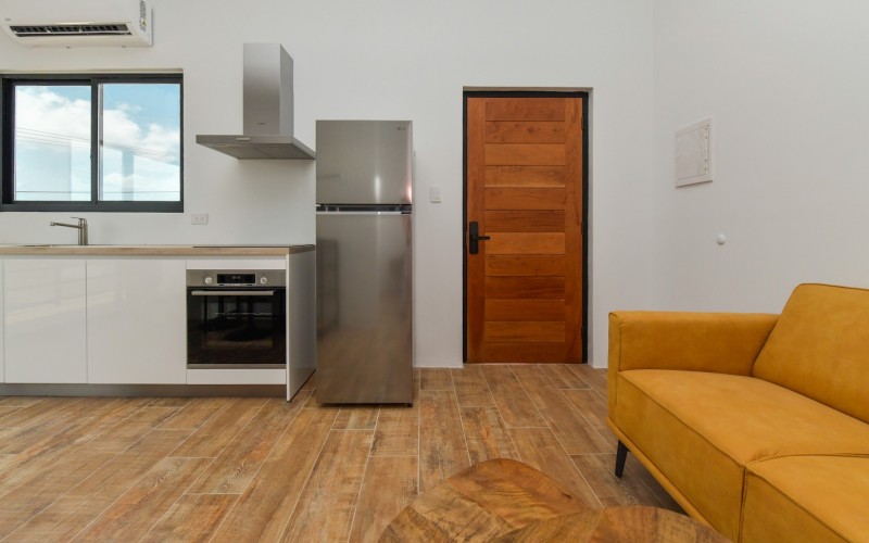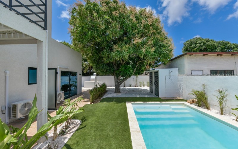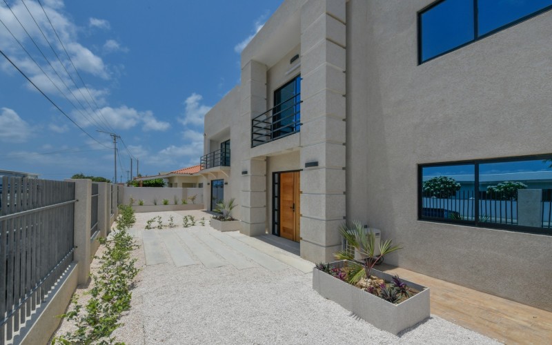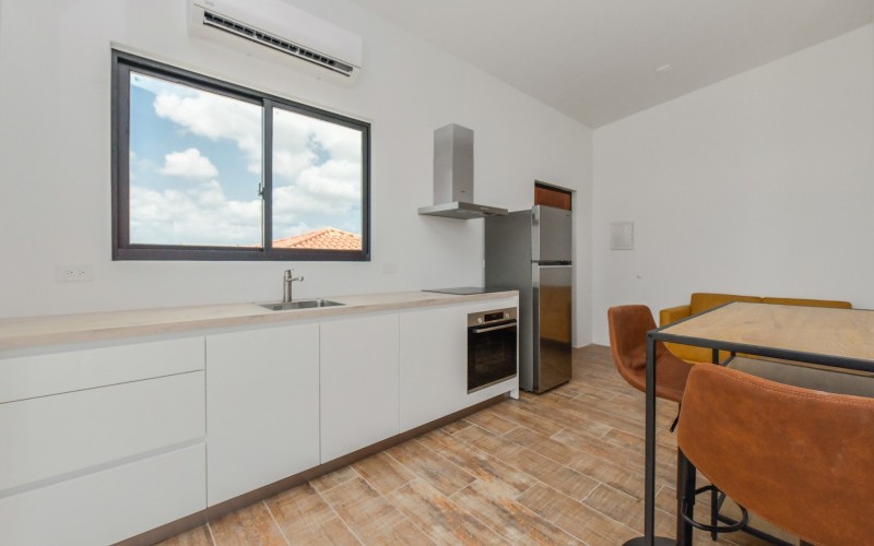 Spacious Studio Apartment, unit 9 Located on a 727m² property, this beautiful and well constructed complex features a main building with 10 high-end studio apartments and 1 two bedroom apartment. Apartment 9, situated on the first floor, is a 47.5m² studio with a practical layout. Inside, you will find a premium quality European kitchen complete with all appliances, all bedroom and living room furniture and light fixtures and a private Grof by Kohler luxury bathroom. The apartment includes a 5m² well positioned outdoor balcony, positioned at the front of the building, providing a comfortable and relaxing outdoor space. The building is constructed with solid concrete blocks and columns, ensuring durability. The walls are finished with A1 plaster and paint. The apartment has a modern European and refined look, featuring wooden sliding doors and black aluminum-framed double glass isolated windows. The flooring is covered with high-quality Brazilian ceramic tiles, adding to the overall elegance. A split-unit air conditioner efficiently cools the entire apartment. The communal garden offers various well-designed amenities, including all outdoor furniture, swimming pool and pool deck and a barbecue area with pergola. Additionally, the outdoor space features a communal washer and dryer, extra seating areas, walkways, garden lighting, and lush greenery with plants and trees, creating a relaxing atmosphere. The apartment is located on a spacious paved road in center Oranjestad: Rudolf Arendsstraat 42. Just a few minutes' drive from the cruiseterminal, beaches and and restaurants. It's all conveniently nearby, making this an ideal place to live or enjoy a holiday in your second home. Key Features: 1 studio apartment Property land Close proximity to Oranjestad Spacious build-up area: 47.5m² including 5m2 outside terrace Community amenities include pool, BBQ area and sitting areas Low monthly HOA fee Turn key, including all premium European kitchen, furniture and appliances Don’t miss out on this unique opportunity! Contact us today to learn more or schedule a visit! Bibi Louwers +2975697343