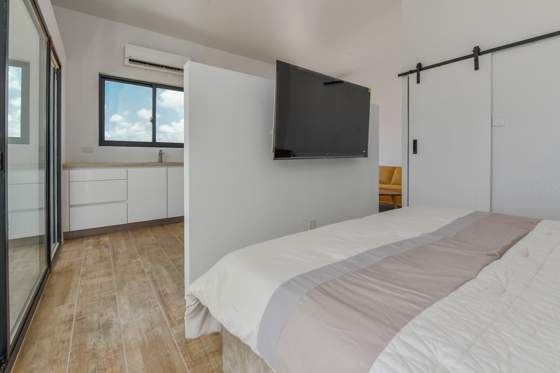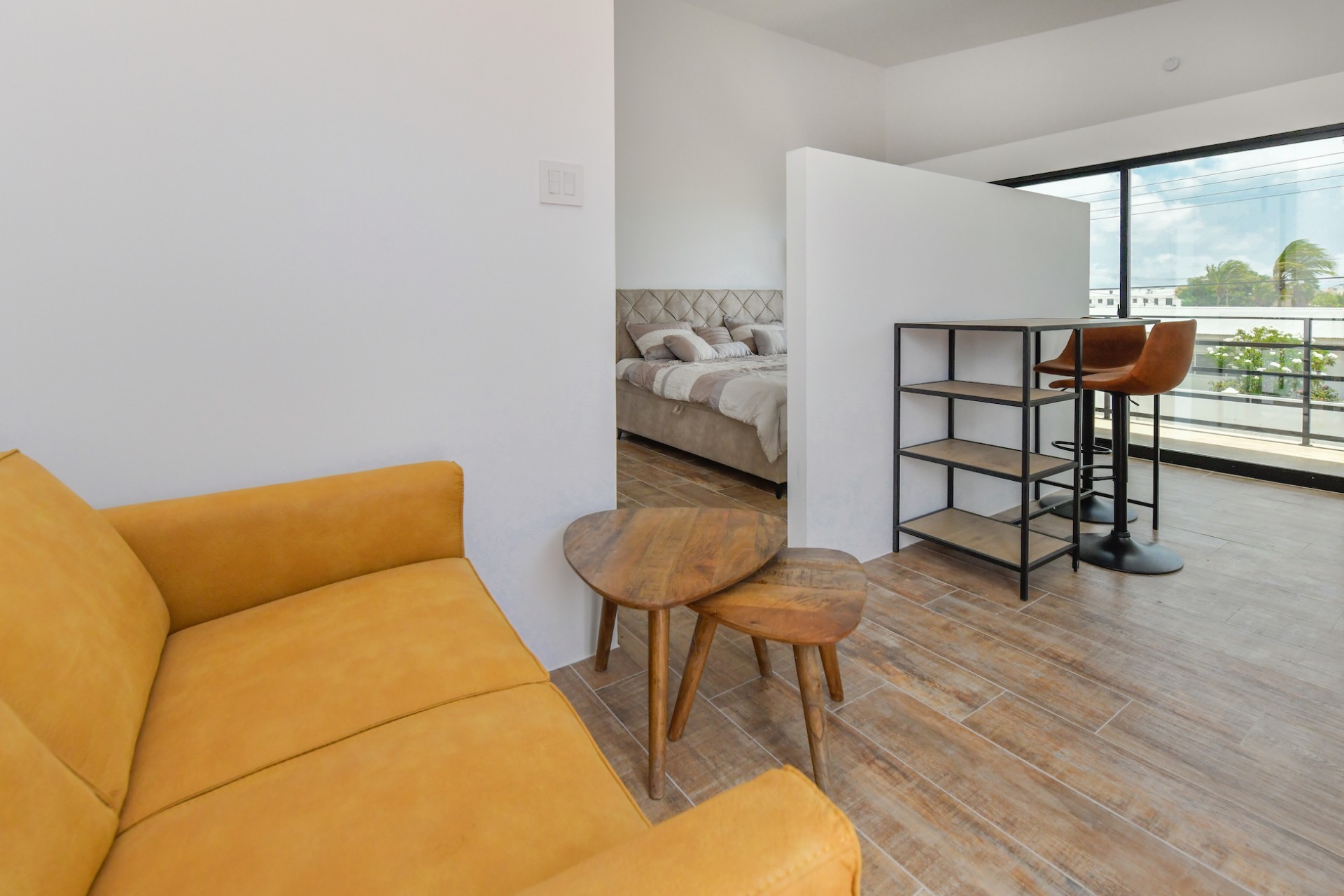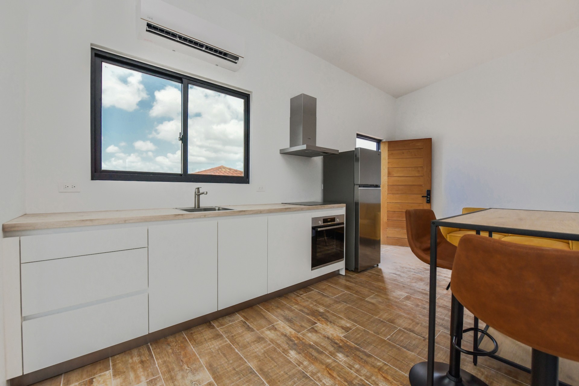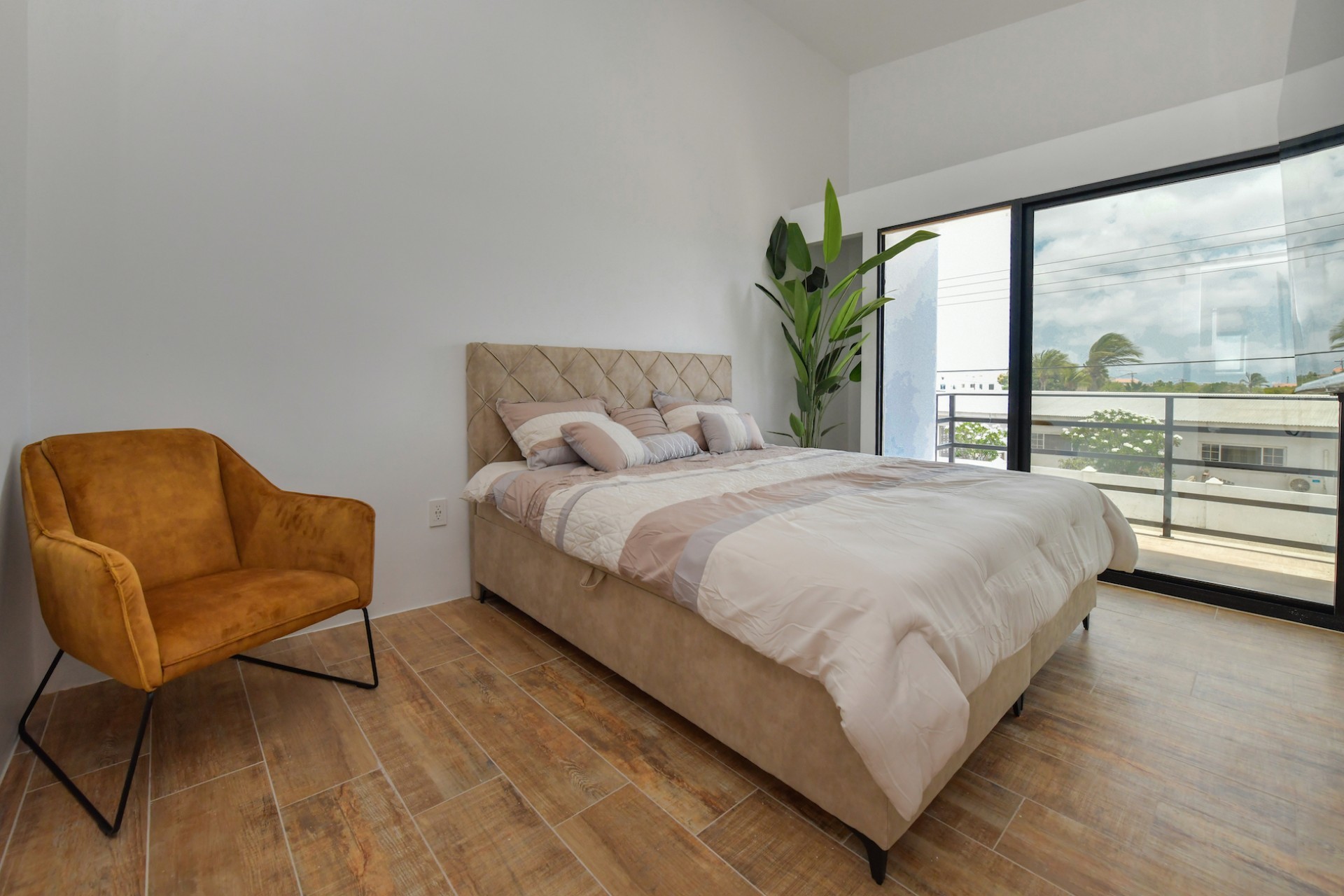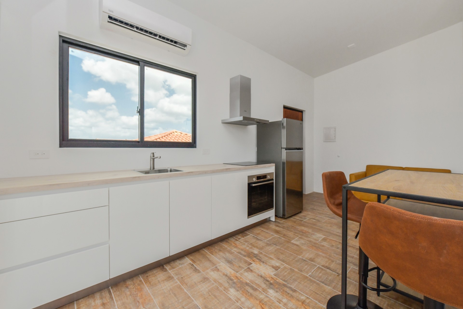 Spacious Studio Apartment, unit 9 Located on a 727m² property, this beautiful and well constructed complex features a main building with 10 high-end studio apartments and 1 two bedroom apartment. Apartment 9, situated on the first floor, is a 47.5m² studio with a practical layout. Inside, you will find a premium quality European kitchen complete with all appliances, all bedroom and living room furniture and light fixtures and a private Grof by Kohler luxury bathroom. The apartment includes a 5m² well positioned outdoor balcony, positioned at the front of the building, providing a comfortable and relaxing outdoor space. The building is constructed with solid concrete blocks and columns, ensuring durability. The walls are finished with A1 plaster and paint. The apartment has a modern European and refined look, featuring wooden sliding doors and black aluminum-framed double glass isolated windows. The flooring is covered with high-quality Brazilian ceramic tiles, adding to the overall elegance. A split-unit air conditioner efficiently cools the entire apartment. The communal garden offers various well-designed amenities, including all outdoor furniture, swimming pool and pool deck and a barbecue area with pergola. Additionally, the outdoor space features a communal washer and dryer, extra seating areas, walkways, garden lighting, and lush greenery with plants and trees, creating a relaxing atmosphere. The apartment is located on a spacious paved road in center Oranjestad: Rudolf Arendsstraat 42. Just a few minutes' drive from the cruiseterminal, beaches and and restaurants. It's all conveniently nearby, making this an ideal place to live or enjoy a holiday in your second home. Key Features: 1 studio apartment Property land Close proximity to Oranjestad Spacious build-up area: 47.5m² including 5m2 outside terrace Community amenities include pool, BBQ area and sitting areas Low monthly HOA fee Turn key, including all premium European kitchen, furniture and appliances Don’t miss out on this unique opportunity! Contact us today to learn more or schedule a visit! Bibi Louwers +2975697343