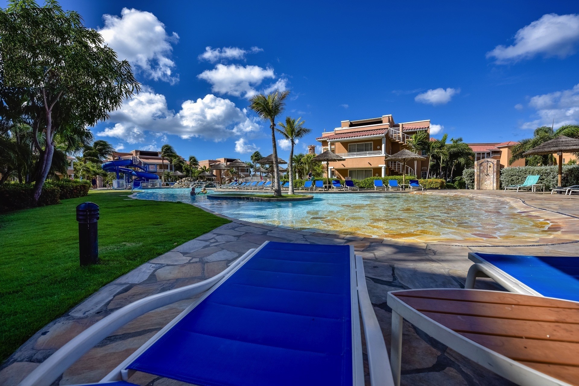 SOLD! Unique resort 1bedroom condominium at The Residences located at the Divi Village Golf & Beach Resort, Eagle Beach. Condo #7 (located on the second floor) offers a fully furnished/air conditioned 1bed/2bath. It features a well-equipped kitchen; all stainless steel appliances with a granite countertop finish, and a well-maintained fully furnished living room. Following the living room, the master bedroom offers it's en-suite bathroom including build-in closet. This unit offers a nice living room overlooking the garden and its beautiful live pond. Additionally, this unit has one designated parking space. Features: This family-friendly beach resort features delicious dining options, great casino action and a full-service spa. The beach resort offers full access to the other amenities and facilities at nearby Divi resorts on the island. Resort guests can discover multiple restaurants, tennis courts and live entertainment at night. This beach resort also features a children’s club and three swimming pools and guests can enjoy a free shuttle service to the shopping area and Divi’s Alahambra Casino. Divi Beach faces south-west and is located just south of Druif Beach, and by walking along the shore for just a few hundred meters it can easily be reached. This beach can get up to 100 meters wide and has a length of about 500 meters. The beach extends all the way to the Tamarijn Beach Resort further down south. More info? Contact Joshua Laclé at (+297) 733 7070 or email [email protected]