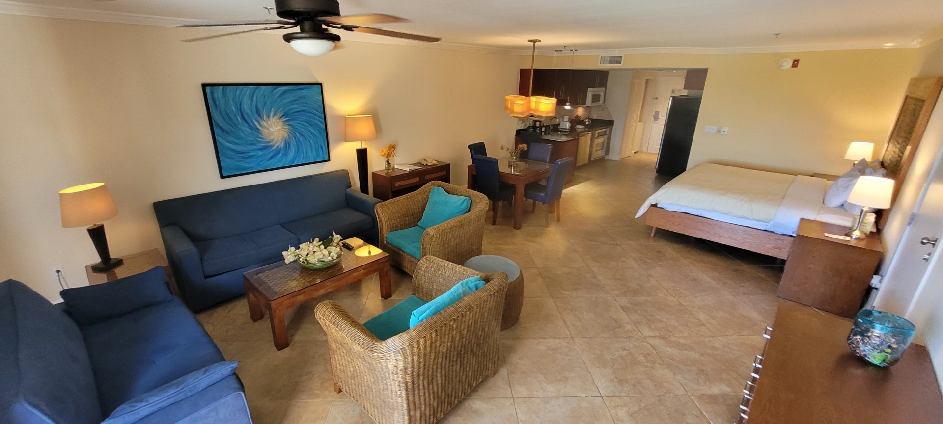 SOLD! Unique resort Studio condominium at The Residences located at the Divi Village Golf & Beach Resort, Eagle Beach. Condo #8 (located on the second floor) offers a fully furnished/air conditioned studio. It features a well-equipped kitchen; all stainless steel appliances with a granite countertop finish, and a well-maintained fully furnished living room. This unit offers a spacious balcony overlooking the garden and its beautiful live pond. Additionally, this unit has one designated parking space. Features: This family-friendly beach resort features delicious dining options, great casino action and a full-service spa. The beach resort offers full access to the other amenities and facilities at nearby Divi resorts on the island. Resort guests can discover multiple restaurants, tennis courts and live entertainment at night. This beach resort also features a children’s club and three swimming pools and guests can enjoy a free shuttle service to the shopping area and Divi’s Alahambra Casino. Divi Beach faces south-west and is located just south of Druif Beach, and by walking along the shore for just a few hundred meters it can easily be reached. This beach can get up to 100 meters wide and has a length of about 500 meters. The beach extends all the way to the Tamarijn Beach Resort further down south. More info? Contact Joshua Laclé at (+297) 733 7070 or email [email protected]