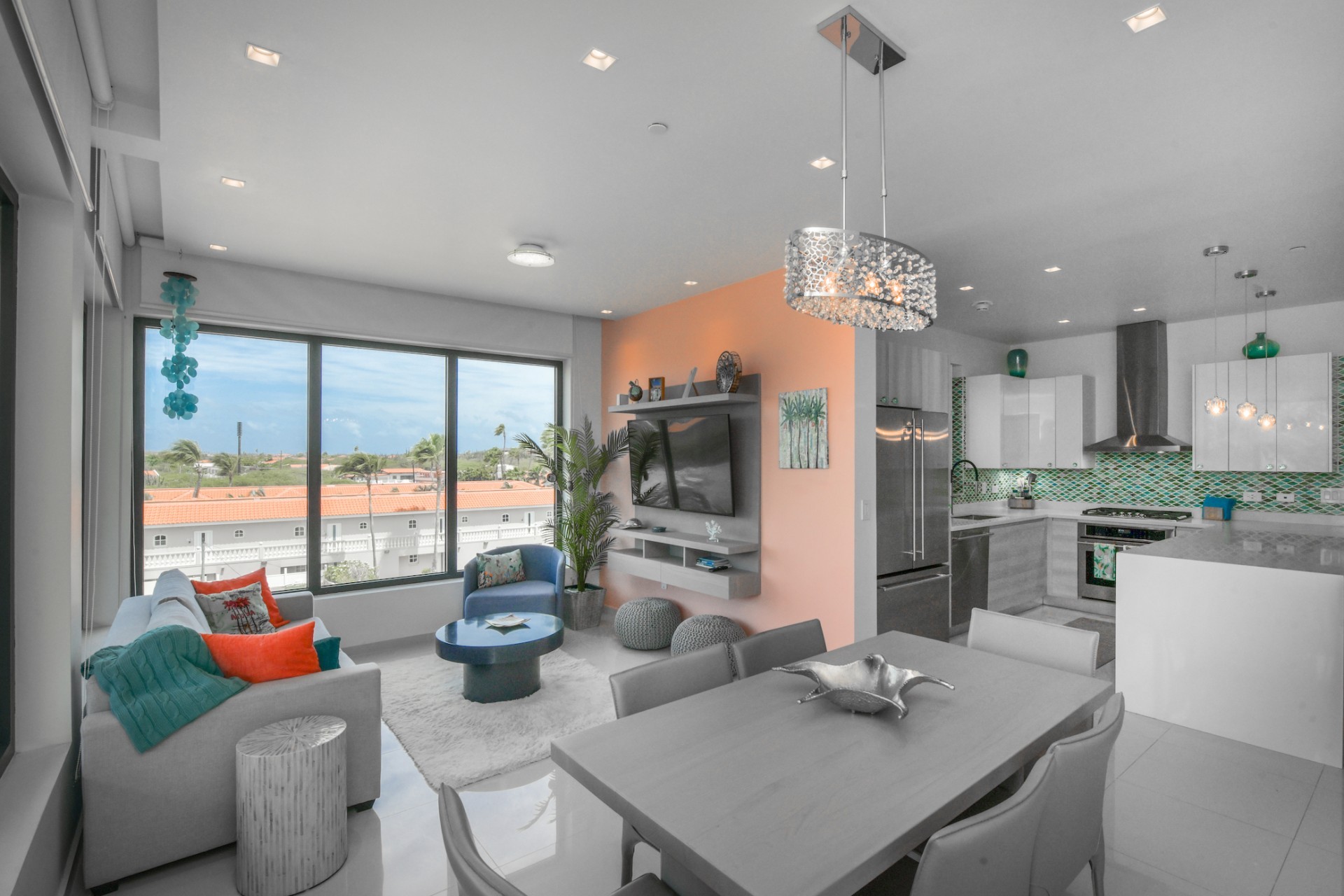 Ocean View Corner Condo with Rooftop Terrace – Walk to the Beach | Waykiri Aruba Experience elevated island living in this turn-key, bright and spacious corner-unit condo located on the 3rd floor in the desirable area of Noord. Perfectly positioned to capture the island breeze, this beautifully designed residence offers stunning rooftop views of the ocean and the 360 degrees of the surrounding island landscape. This 2-bedroom, 2.5-bathroom Penthouse condo features a versatile and thoughtfully designed layout, with both bedrooms offering private in-suite bathrooms for added comfort and privacy, as well as a convenient half bathroom for guests. One of the bedrooms includes a lockout option with its own private entrance, making it ideal for short-term rentals, hosting guests, or creating additional privacy. The open-concept kitchen and living area are filled with natural light that opens onto a spacious private terrace, perfect for morning coffee while enjoying the Caribbean breeze or taking in Aruba’s unforgettable sunsets. Whether you are looking for a full-time residence, vacation home, or income-producing property, this fully furnished, turn-key condo is a rare opportunity in one of Aruba’s most desirable locations. Key Features • 3rd-floor corner unit – bright, private, and airy with excellent natural light • Elevator just steps from your front door • Rooftop terrace with spectacular ocean and island views • 2 bedrooms | 2.5 bathrooms • 1-bedroom lockout with private entrance – perfect for guests or rental income • Two private balconies/terraces • Modern kitchen with premium finishes • Fully furnished – move-in or rental ready • Two swimming pools • Three outdoor kitchens and entertaining areas • Upscale on-site restaurant • Walking distance to Aruba’s famous beaches • Turn-key property – ready for immediate use or vacation rental income • Excellent short-term rental potential For more information or to schedule a viewing, please contact: Agata Innamorato 📧 [email protected] 📞 Aruba: +297 593 6050 📞 USA: +1 (224) 297-5982